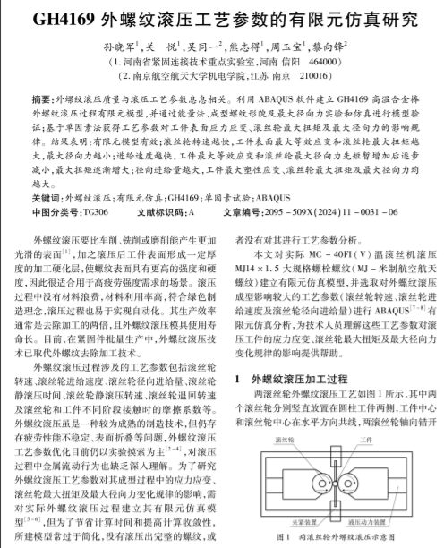 GH4169 外螺纹滚压工艺参数的有限元仿真研究
