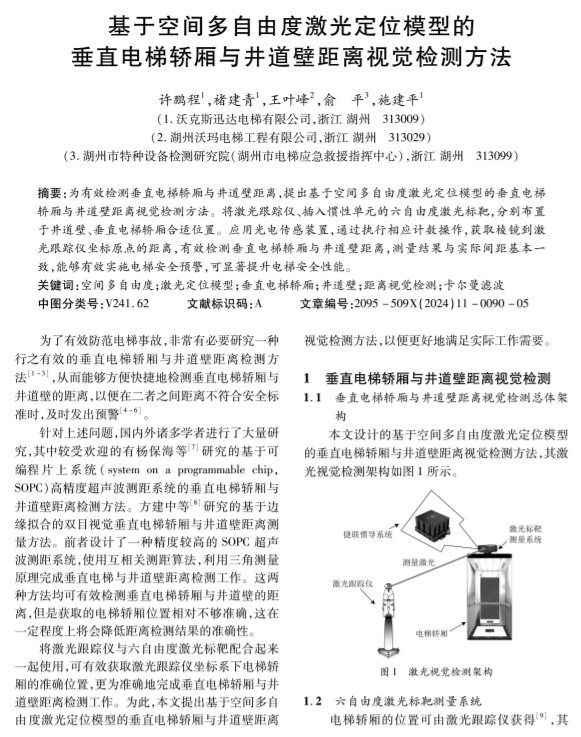 基于空间多自由度激光定位模型的垂直电梯轿厢与井道壁距离视觉检测方法