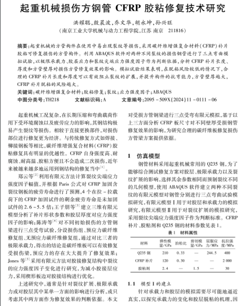 起重机械损伤方钢管CFRP胶粘修复技术研究