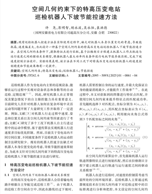 空间几何约束下的特高压变电站巡检机器人下坡节能控速方法