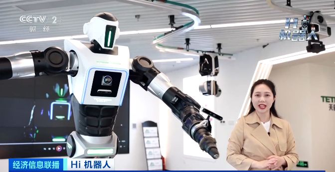 总台央视记者宋华:全球首款防爆人形机器人天魁一号,它的身材比一般的人形机器人要魁梧很多,我的身高是1.6米,它有2.2米,最高可以触碰到3.3米的目标,当它的双臂展开的时候,臂展有3.1米,全展开形态下,它的单臂末端负载可以达到15千克。
