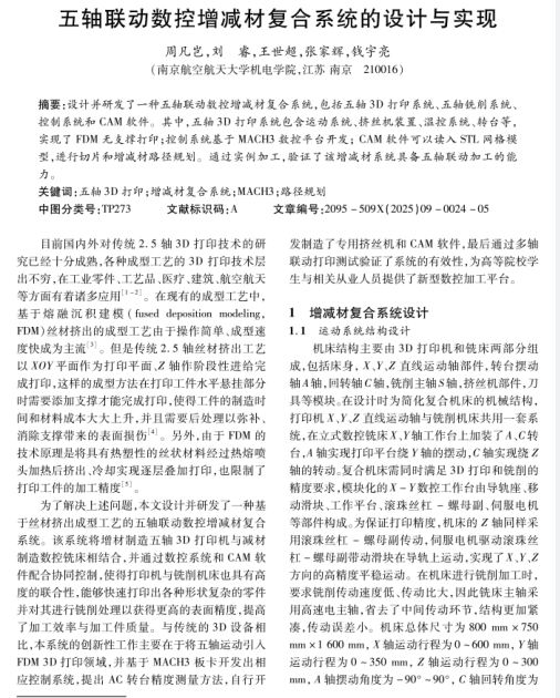 五轴联动数控增减材复合系统的设计与实现