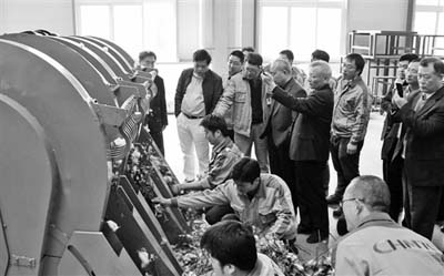 市经信委领导及鉴定委员会就“CMJ3-I棉花收获机”新产品技术鉴定开展讨论。
