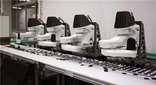 StäubliTXHE潮湿环境机器人系列由于其独特的结构,适用于潮湿工作环境,是水切割、清洗、半导体化学处理、食品处理等应用的理想选择。其在汽车零部件生产过程中更是发挥了不容小觑的作用。凭借这款明星产品,史陶比尔已与BOSCH、MAGNA、VALLOUREC及BORGWARNER等国际著名汽车行业客户建立了坚实的合作基础。