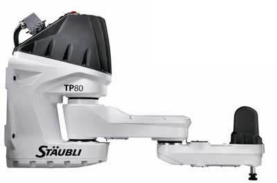 StäubliTP80快速拾放机器人专门用于小零件(1kg以下)的拾放操作,速度可高达200次/分钟,对诸如电子、食品、生命科学与制药、化妆品、塑胶和光伏等各领域的包装尤其适合。