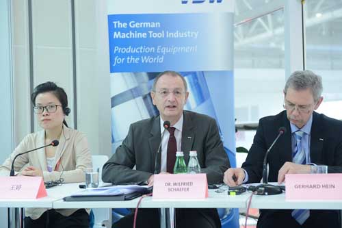 德国机床制造商协会(VDW)位于法兰克福,拥有近300家成员,代表了德国机床工业约90%的生产力。VDW为成员提供相应的支持,同时还陪同德国企业参加重要销售市场的展会,例如北京CIMT。舍弗尔博士说,在本届展会上,德国展商数量达到225家,为历年之最,,他们将展示自己的产品、解决方案及服务。在新闻发布会的演讲中,舍费尔博士提到了如下要点: