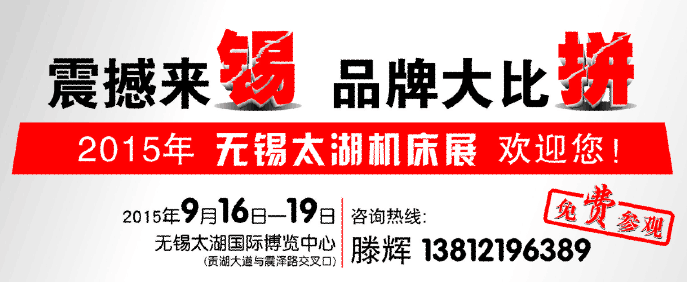 让我们共同期待2015年9月16-19日无锡太湖国际机床展的隆重举办,热烈欢迎国内外客商莅临无锡,迎接来自航空航天、船舶海工、模具制造、军工装备、轨道交通、智能制造、电子信息与装备、电力、机电、通讯、风电、冶金、医疗机械、汽车制造、工程机械、新材料、新能源及环保装备等各大行业的大型采购商参观指导。期待您的光临!