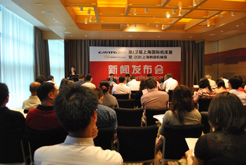 (2011年,EASTPO上海国际机床展主办方 — 上海东博文化发展有限公司与KOMAF韩国机械展主办方 — 韩国机械产业振兴会KOAMI 联合召开新闻发布会。 图片来源:上海东博文化发展有限公司)