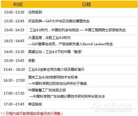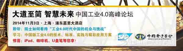 工业4.0, 势不可挡 德国在2013年汉诺威工业博览上提出了“工业4.0(Industry 4.0)”的理念,以期领导全球制造业的新一轮变革。同智慧地球、工业互联网等词汇一样,工业4.0再一次把生产制造业的未来作为其关注点。工业1.0是蒸汽时代,工业2.0是电气化时代,工业3.0是信息化时代,工业4.0则是利用信息化技术促进产业变革的时代—智能时代,它被视为第四次工业革命。 作为世界“最大的工厂”,中国在制造领域发挥巨大作用。中国制造业正在从“中国制造”向“中国创造”转型升级。在工业4.0时代,中国将在全球制造业竞争场上获得提升和超越的绝佳契机。 洞悉时势,知己知彼 在今年7月德国访华期间,习近平主席与德国总理默克尔会面后,对德国工业4.0战略表示高度关注,10月10日中国国务院总理李克强访问德国,与SAP等德国知名工业企业专业技术负责人和专家代表座谈。 SAP作为德国工业4.0工作组的核心企业,受邀成为德国代表团一员参加这次访华活动。作为一家致力于为企业提供先进管理解决方案的德国企业,SAP对工业4.0有着深刻的了解和认知,并希望与广大中国制造企业一同助力中国制造业转型发展。 大道至简,智慧未来 参会嘉宾在了解市场现状和政策导向的同时,也能看到德国工业4.0背景下,企业信息化、工业自动化的优秀方案和案例,还可进一步探讨基于工业4.0的共同创新项目,继而助力自己的企业在第四次工业革命中能洞悉毫厘,决胜千里。