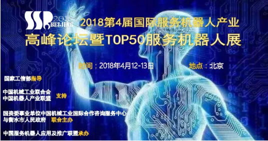 为共享服务机器人产业带来的发展机遇,共同迎接挑战,继续推动服务机器人产业跨界融合,共创服务机器人产业共生生态,在工信部指导、中国机械工业联合会和中国机器人产业联盟支持下,中国机械工业国际合作咨询服务中心、中国服务机器人应用及推广联盟联合河北省衡水市人民政府,将于2018年4月在北京举办第四届国际服务机器人产业高峰论坛。