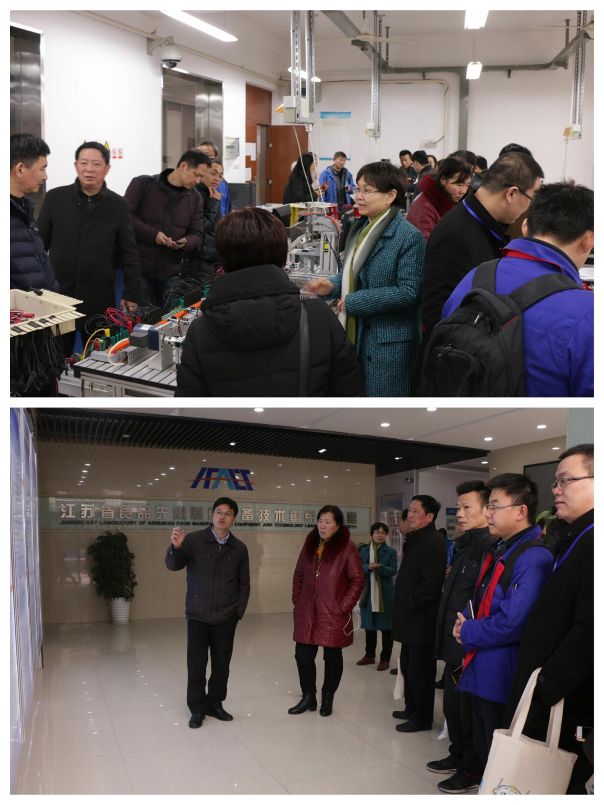 会议学术报告阶段,南京理工大学机械工程学院冯虎田教授、南京航空航天大学楼佩煌教授,上海理工大学杨丽红副教授,君远学院院长张秋菊教授分别作主题报告,分享交流了在智能制造与产学研协同创新、产学研深度合作实现校企共赢、工程创新型国际化人才培养探索及校企合作经验以及多元协同构建智能制造人才培养与产教融合新机制。扬力集团股份有限公司高级工程师仲太生、江苏亚威机床股份有限公司技术中心王金荣总经理,分别从企业的角度阐述了企业的匠心智造、创新转型发展,离散型制造企业推进智能制造的理念与实践。会议结束后,与会代表参观了江南大学君远工程中心和江苏省食品先进制造装备技术重点实验室。