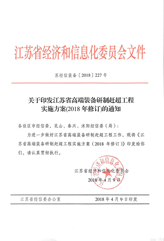 为进一步做好江苏省高端装备研制赶超工程工作,现将《江苏省高端装备研制赶超工程实施方案(2018年修订)》印发给你们,请认真贯彻执行。