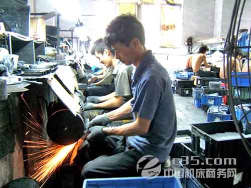 当今,工业机器人的使用已经成为评价一个国家自动化程度高低的重要标志之一,打磨是工业机器人在实际的生产的应用之一。 传统打磨 很多机件生产出来后带有毛刺,因而需要进一步加工去掉毛刺使得机件的表面光滑。打磨这项工作时由工作人员拿工件坐在运转的砂轮钱通过与砂轮的接触达到打磨的效果从而去除毛刺,抑或使用其他类别的机器。在这一过程中往往会伴随着火花和粉尘的出现,它们会对人体造成巨大的伤害,同时也是工作环境变得恶劣,如下图所示常见的打磨方式。