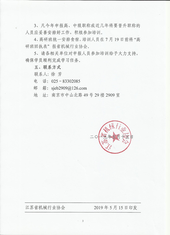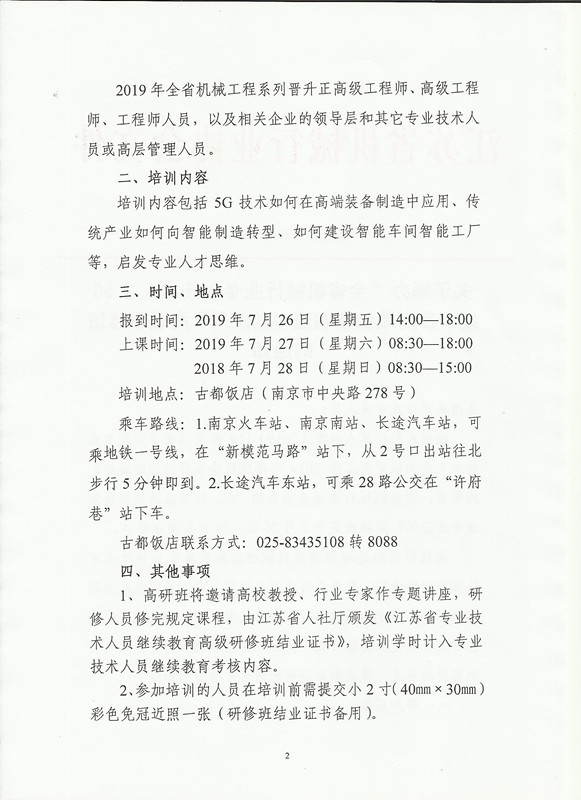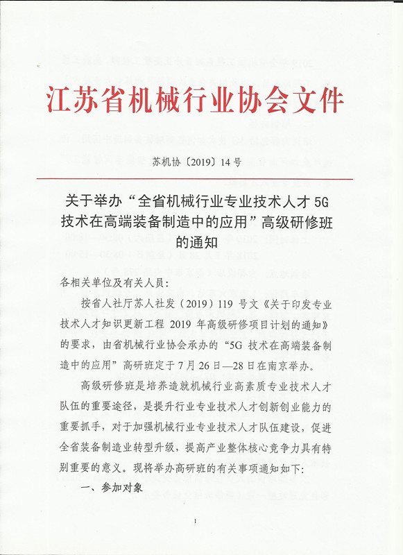 关于举办“全省机械行业专业技术人才5G技术在高端装备制造中的应用”高级研修班的通知