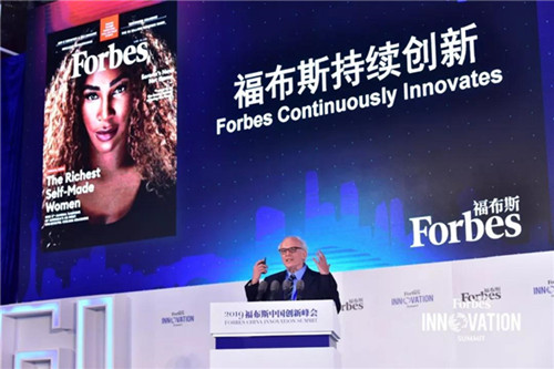(图)福布斯中国总编、福布斯环球媒体控股有限公司首席中国顾问范鲁贤(Russell Flannery)先生上台诠释2019福布斯中国最具创新力企业榜。