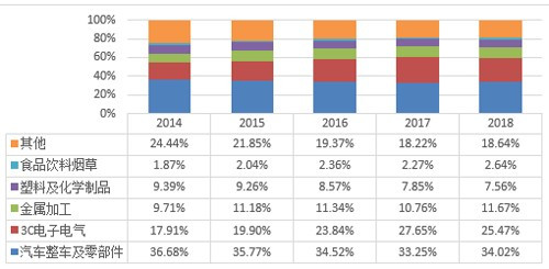 从上图来看,工业机器人在汽车行业里还是当之无愧的“大哥”,但是从图中我们可以看到,汽车行业已经增长很小了。近几年工业机器人在3C领域有了突飞猛进的应用,这种情况不仅仅是在中国,在北美甚至于是全球都是处于这种状态。在北美,汽车行业一直都是工业机器人的领路人。不过在最近的几年里,工业机器人在汽车行业里的销售下降,反而在食品、电子、塑料。橡胶、生命科学等等增长快速。