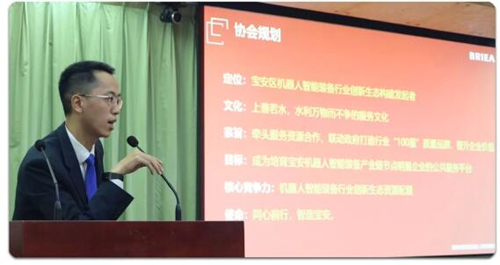 周学良副区长希望协会积极发挥平台作用,有效覆盖更多区机器人智能装备产业知名关键企业,扶植机器人智能装备产业发展,为会员企业提供专业化服务。同时积极整合各方资源,关注推进行业重点领域,做好政府助手,在关注宝安区机器人智能装备产业发展状况与问题的同时,也密切关注国内外机器人智能装备技术与产业发展问题,提供建议,共同促进宝安区机器人智能装备产业良性、快速的发展。
