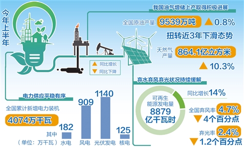 今年上半年,国家能源局通过建立健全可再生能源电力消纳保障机制,进一步完善新能源发电项目竞争性配置机制,积极采取措施加大力度消纳可再生能源,弃水弃风弃光状况持续缓解。