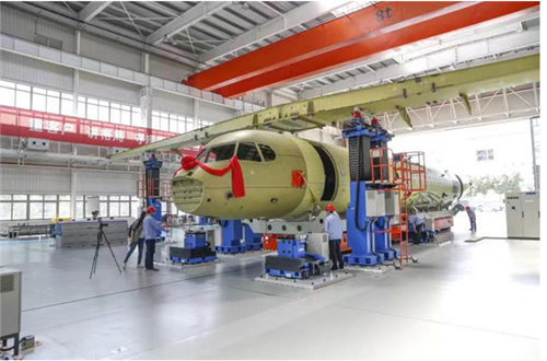 以精益为中心构建的飞机总装智能移动生产线成为确保新舟700研制的关键。针对新舟700飞机的高质量、高效率、精益生产要求,以实现民机总装由固定式静态装配模式向移动式智能装配模式转变为目标,完成了数字化生产线建模和生产仿真,围绕制造工艺方案和装配工艺流程布局生产单元,研究突破飞机精益生产工艺均衡与仿真优化、飞机自动化精准装配、数字化测量等关键技术,构建起具有自主知识产权的民机总装智能移动生产线,为实现新舟700飞机智能制造奠定了坚实基础。