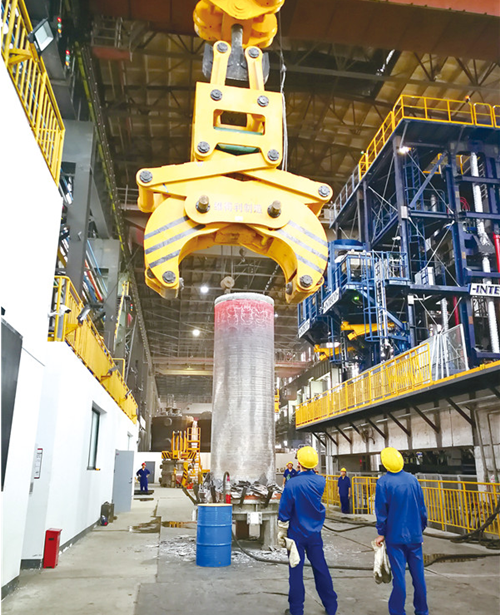 近日,在国机重装二重装备125t电渣炉的生产现场,随着3支重型燃机透平轮盘锻件用钢锭和两支超超临界转子用电渣钢锭成功出炉,标志着国机重装Cr12型材料高质量电渣钢锭进入批量化生产阶段。至此,国机重装开启了重型燃机透平轮盘国产化之路和超超临界转子锻件的技术质量升级之路,为未来重型燃机和超超临界发电机组完全自主化奠定了坚实基础。