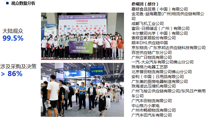 由广州市物流技术与应用协会协办,广东省轻工业协会、广东省制造业协会、广东省产业发展促进会、广东省日化商会等众多行业商协会鼎力支持,为参展商在展销平台之外,提供更多的机会和资源,帮助参展商在当地市场开拓业务,助力买家行业智造升级。