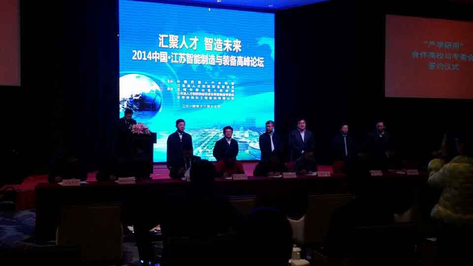 12月13日,2014中国江苏智能制造与装备高峰论坛在风景秀丽的无锡惠山召开,此次会议由中国机器人产业联盟、江苏省人才创新创业促进会主办,无锡市惠山区人民政府、江苏省人才创新创业促进会装备制造专委会、天奇自动化工程股份有限公司承办,来自全国的专家、教授、企业负责人200人参加了会议。