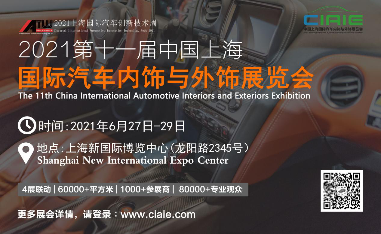 第十一届中国上海国际汽车内饰与外饰展览会正式定档2021年6月27-29日,超过十年的成功经验和深入汽车技术、设计、制造、材料行业的探究,使CIAIE再次站上新的巅峰,迈上全新的征程!