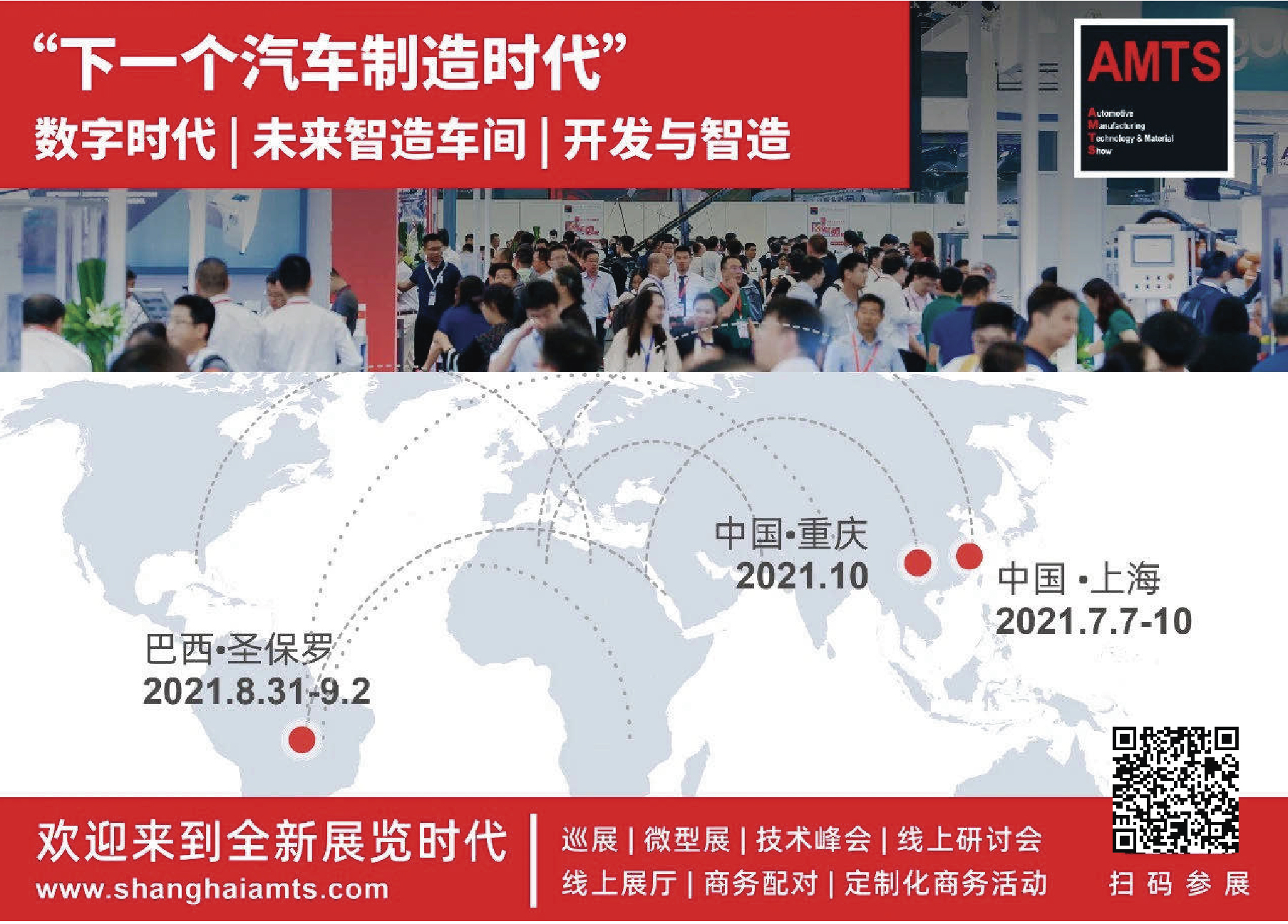 除上海站以外,2021年,AMTS的系列品牌展会及会议还将布局全球,陆续登陆:巴西圣保罗(2021.08),中国重庆(2021.10)等国家和地区。全“新”战略布局,从点到面覆盖汽车工程市场各地需求。