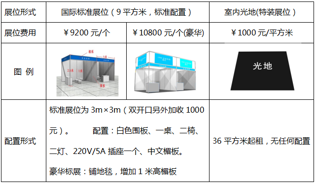 注1:免费及增值服务包括:会刊(免费刊登300字左右企业简介),参展商胸卡,定向组织观众,标准展台搭建(净地除外),展场清洁及保卫。