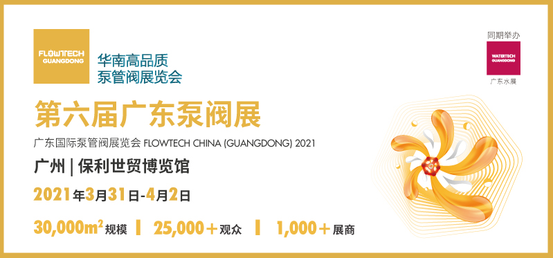第六届广东国际泵管阀展览会(简称“广东泵阀展”)是华南高品质的泵管阀展览会,旨在通过集中展示流体机械行业的变革与进步,促进产业上下游的沟通与合作,打造一站式采购平台。寒冬已过,初春来袭,第六届广东泵阀展盛会将于2021年3月31-4月2日将在广州保利世贸博览馆拉开帷幕,并且已经通过广州市商务局审议!届时携手同期举办的广东水展,规模将超30,000平米,横跨市政、工业、民用三大领域,本届展会汇聚1,000多家行业品牌展商,25,000多件展品,预计迎来华南地区的各大水司、水协、设计院、经销商、工程公司、工业终端行业等35,000多名专业观众莅临参观,为泵阀行业打造一个安全有保障、优质高效的一站式商贸平台!