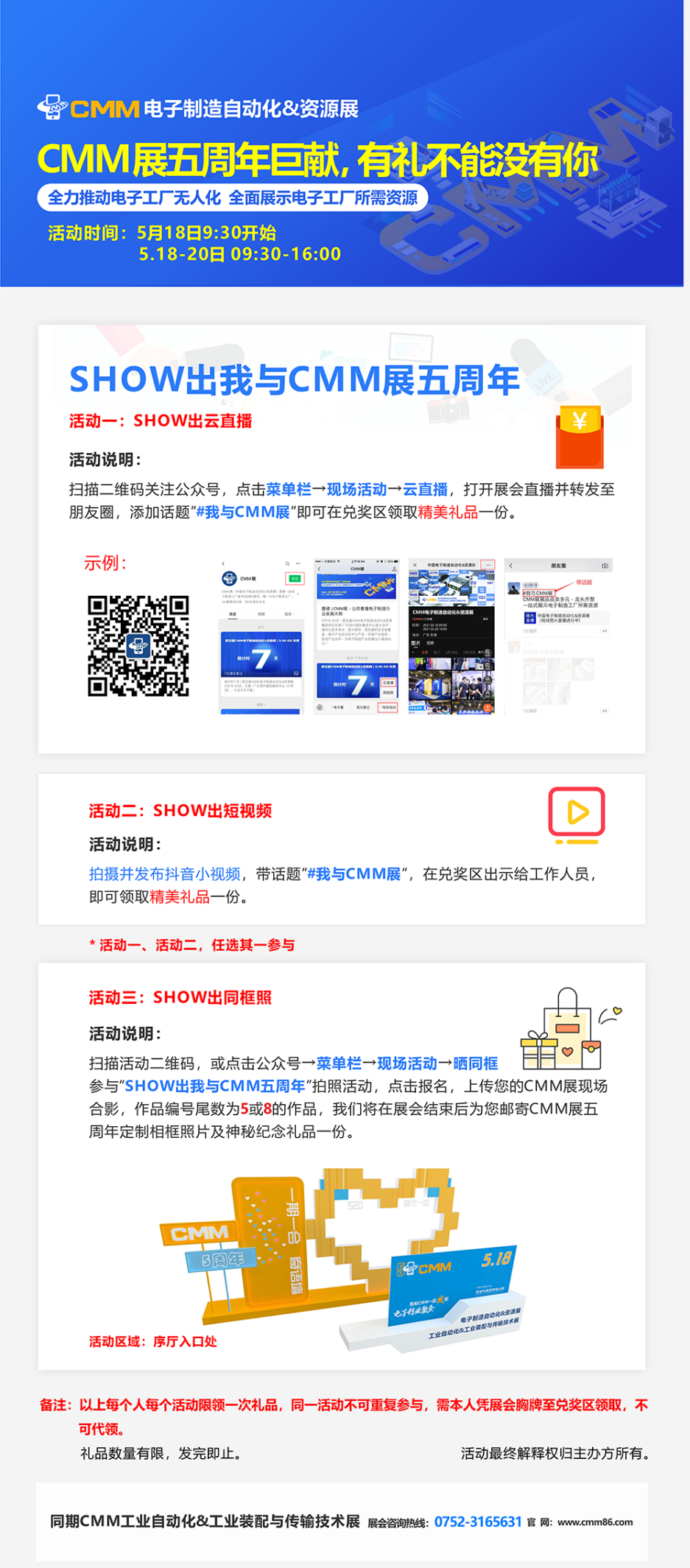 同期参加#与CMM展五周年活动,将有机会获得精美礼品。