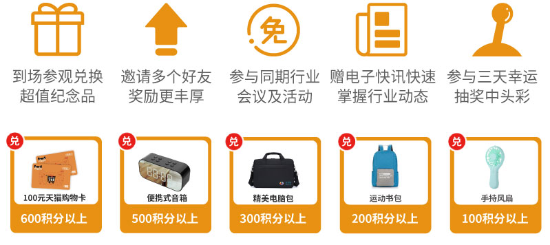 ★ 邀请5名专业观众预登记并到场即可额外获得100元天猫卡!