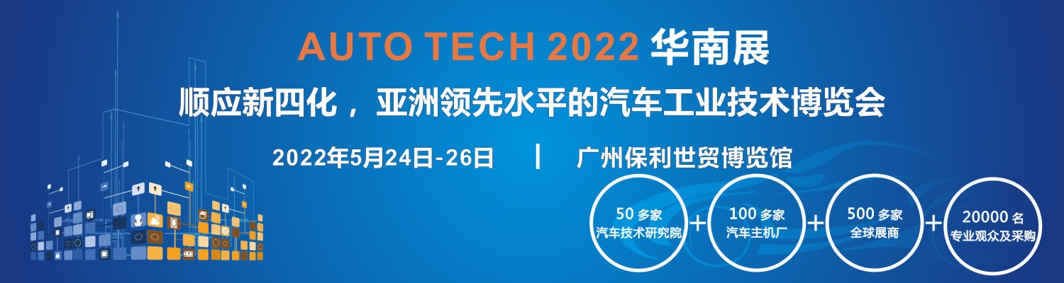 AUTO TECH 中国国际汽车技术展览会经过多年的发展和完善,已经成为汽车前装领域不可多得的专注于技术和贸易的展览会,成功吸引了超过上千家国内外知名品牌参展。本届汽车技术展将于2022年5月24-26日在广州保利世贸博览馆举办,以“绿色发展,科技创新 ”为主题,坚持技术引领科技,技术推动产业发展,为中国汽车产业新四化和走向世界贡献力量。