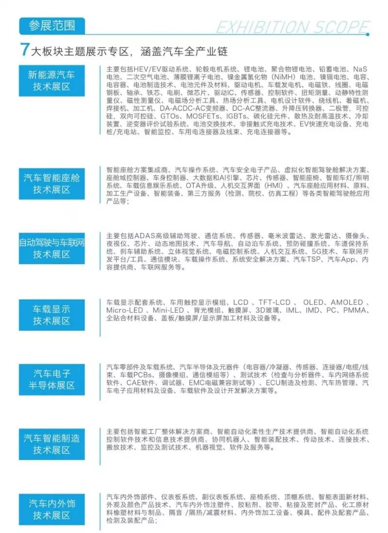 AAE 2021 展现的不仅是产品,更是技术碰撞的可能。展出范围共规划了七大主题展示专区,涵盖汽车全产业链。新产品、新技术尽览于此,轻松占领行业先机:新能源汽车技术展区、汽车智能座舱技术展区、自动驾驶与车联网技术展区、车载显示技术展区、汽车电子半导体展区、汽车智能制造技术展区、汽车内外饰技术展区。
