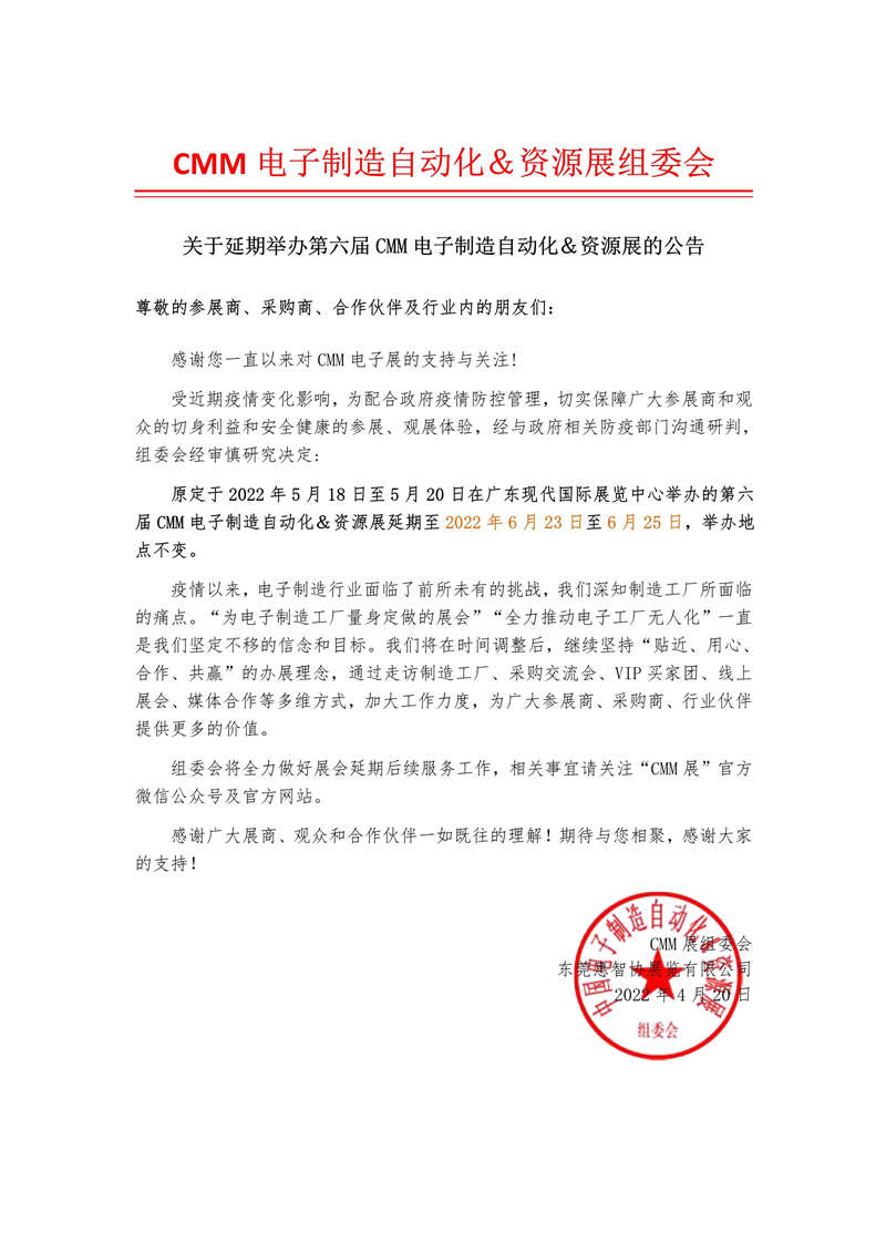 CMM电子制造自动化&资源展延期通知