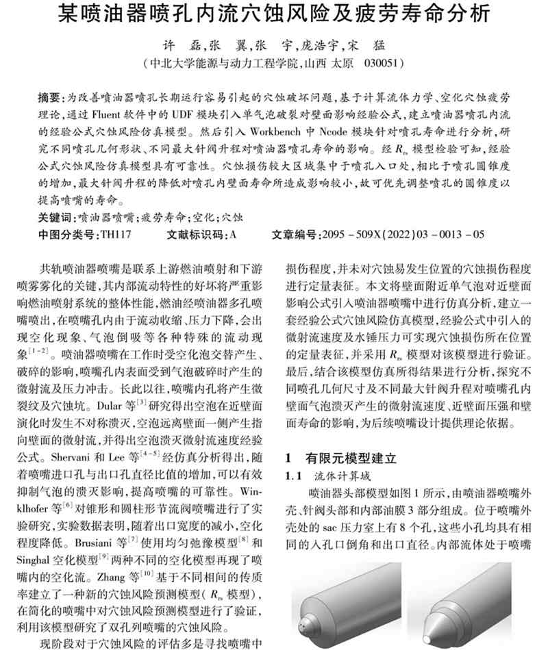 某喷油器喷孔内流穴蚀风险及疲劳寿命分析
