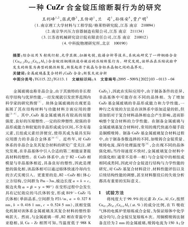 一种CuZr合金锭压缩断裂行为的研究
