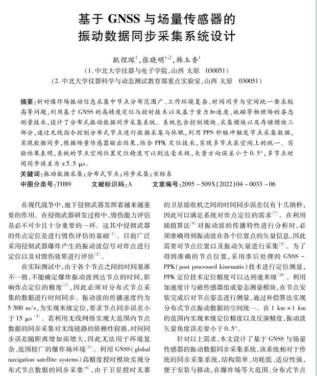 基于GNSS 与场量传感器的振动数据同步采集系统设计