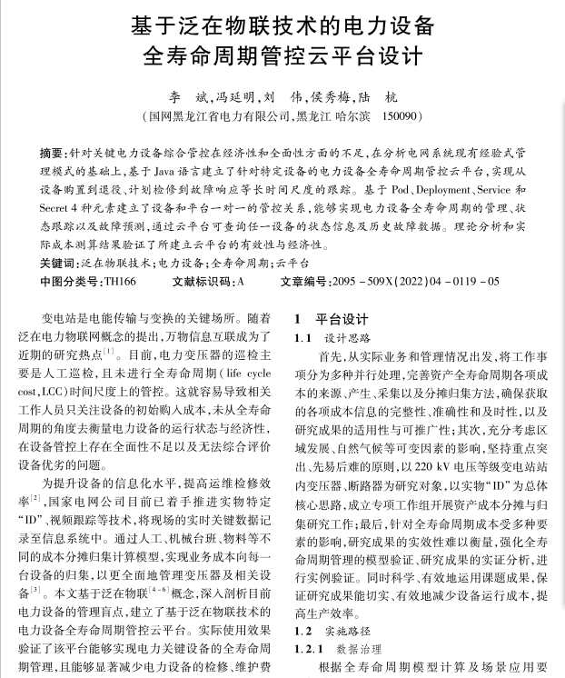 基于泛在物联技术的电力设备全寿命周期管控云平台设计