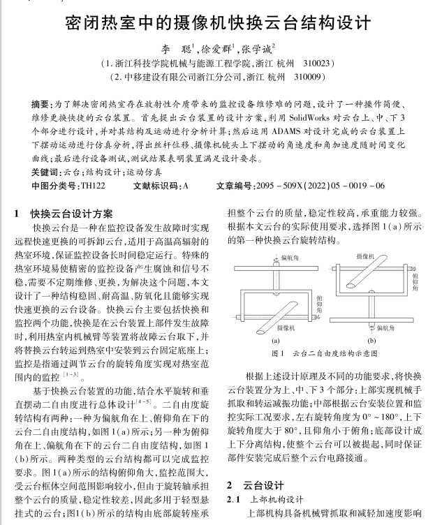 密闭热室中的摄像机快换云台结构设计