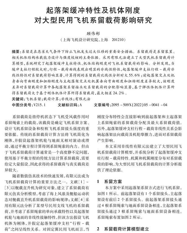 起落架缓冲特性及机体刚度对大型民用飞机系留载荷影响研究