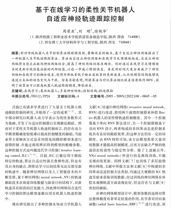 基于在线学习的柔性关节机器人自适应神经轨迹跟踪控制