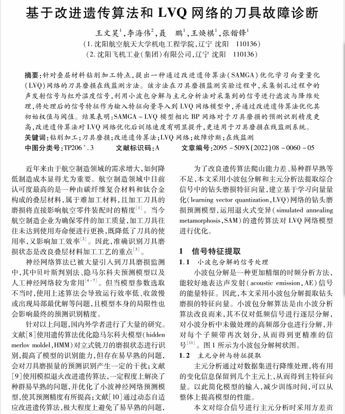 基于改进遗传算法和LVQ网络的刀具故障诊断