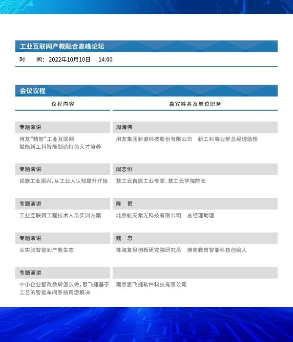 2022年10月10日下午,由南京润展国际展览有限公司承办的“工业互联网产教融合高峰论坛”在线上成功举办。