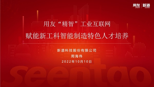 由用友集团新道科技股份有限公司新工科事业部总经理助理周海伟做线上主题演讲。