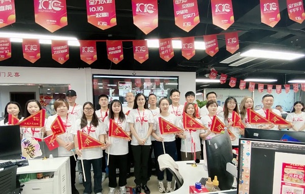 肥多多CEO尹海凤为各部门颁发作战令旗,一声令下,将士们有战必应,使命必达 !全体伙伴高呼“肥多多,加油,加油,加油!”为即将出站的战士们正能量加持。