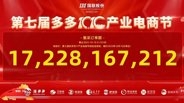 每到整点,播报员会公布实时数据,看着节节高升的数据,伙伴们热情高涨,激情澎湃,最终超额完成了既定目标。截止10月10日21:20国联股份多多双十电商节提前结束,总体集采订单为172.28亿元,同比增长率达到90.21%,再次刷新记录,圆满收官!