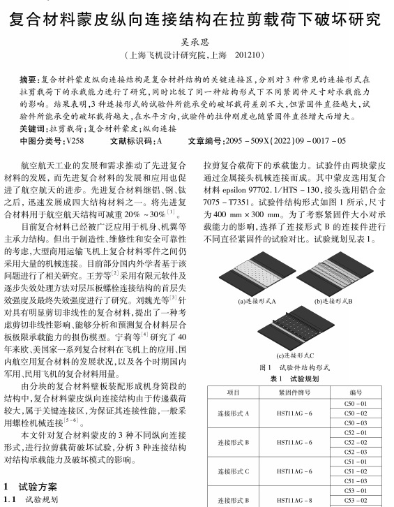 复合材料蒙皮纵向链接结构在拉剪裁荷下破坏研究