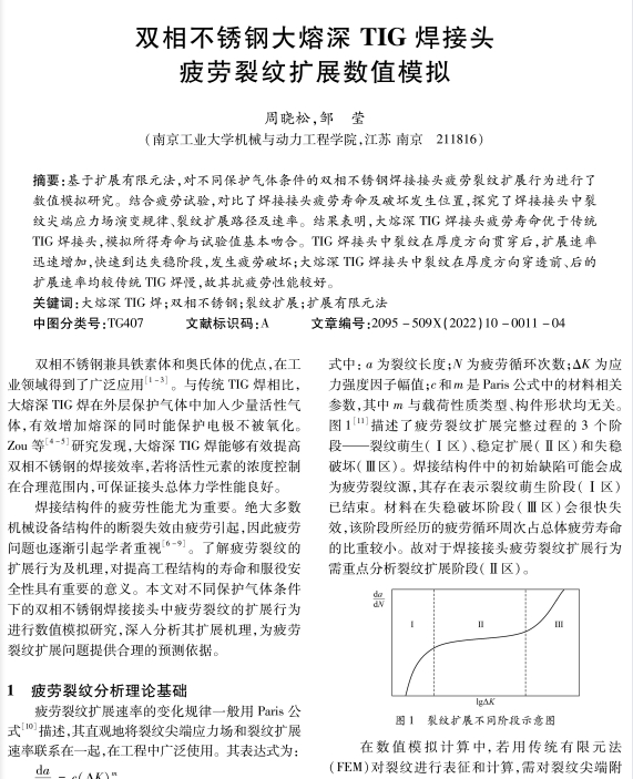 双相不锈钢大熔深TIG焊接头疲劳裂纹扩展数值模拟