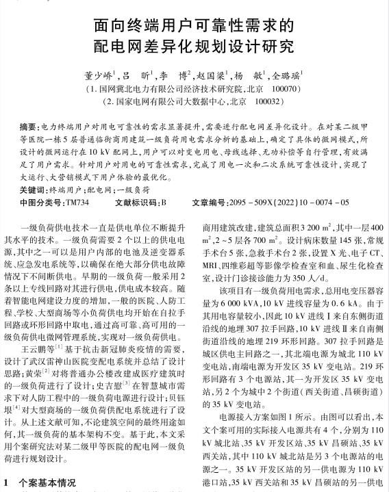 面向终端用户可靠性需求的配电网差异化规划设计研究